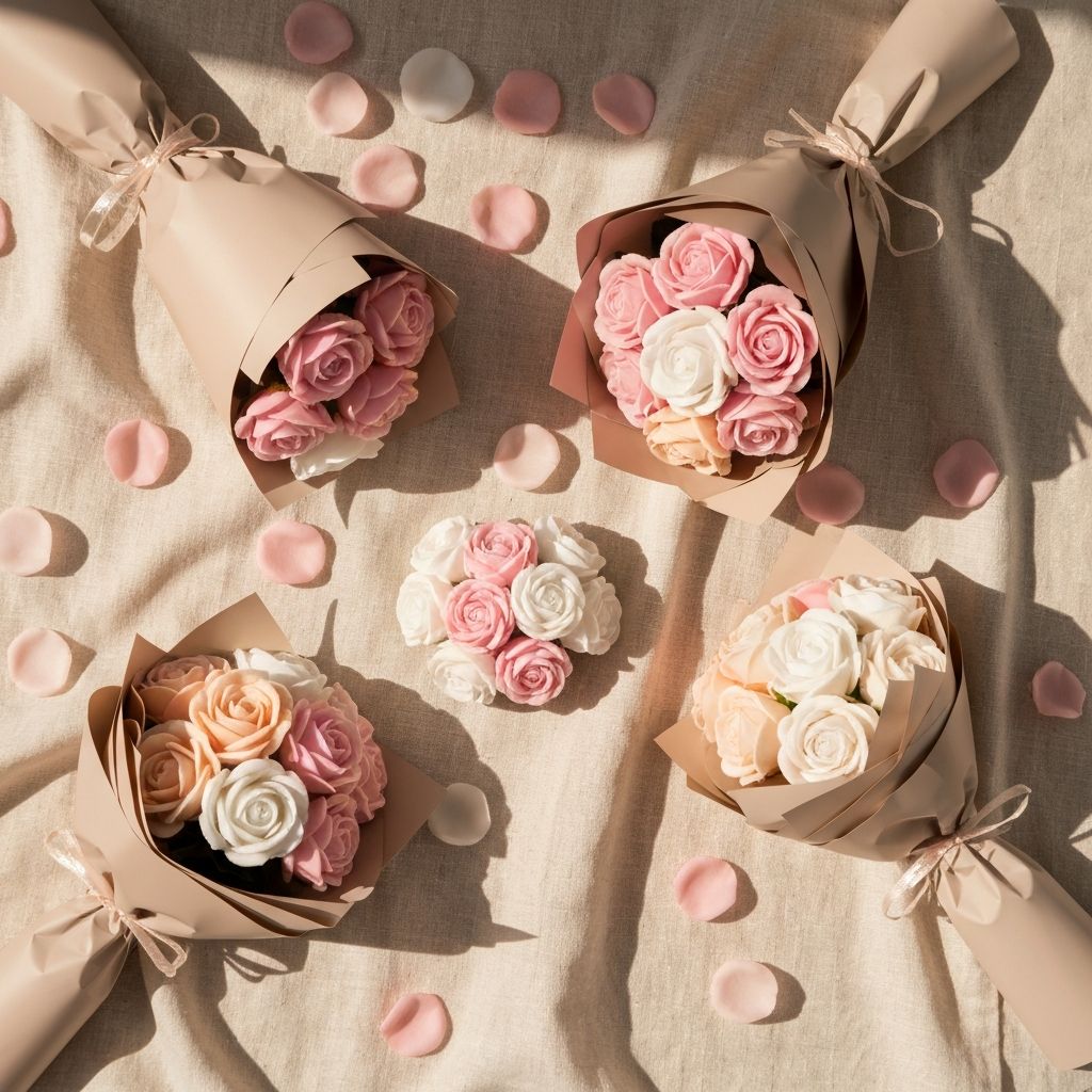 Squisiti bouquet di fiori di sapone fatti a mano, realizzati su commissione con amore da Nina. Chiama per creare il tuo bouquet perfetto per ogni occasione.